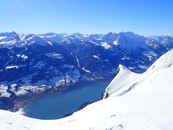 Eine der schönsten Schneeschuhwanderungen im Toggenburg führt von der Alp Sellamatt zum Frümseltal. Unsere Spur führt zuerst gemächlich über Alpweiden und durch lichte Tannenwälder und danach mässig ansteigend durch das wilde Frümseltal zur Lücke zwischen Brisi und Frümsel. Hier erwartet uns bei gutem Wetter eine spektakuläre Aussicht auf den tief unter uns liegenden Walensee.